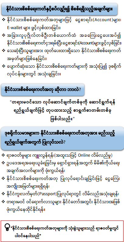 "သတိပြုဖွယ် နိုင်ငံသားစိစစ်ရေးကတ်အတုနှင့် အွန်လိုင်းလိမ်လည်မှု အန္တရာယ်"