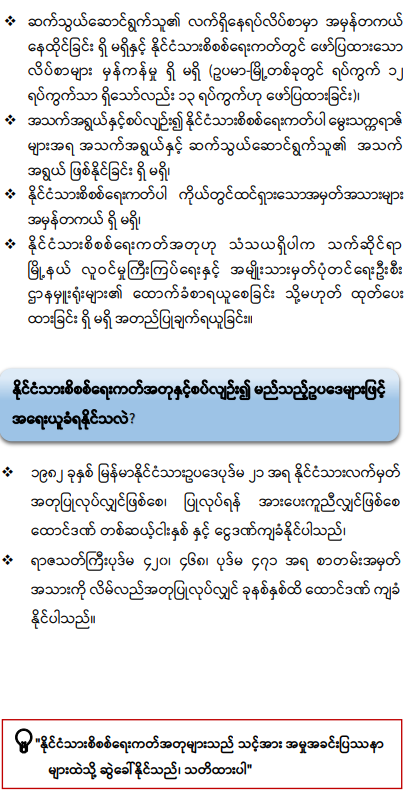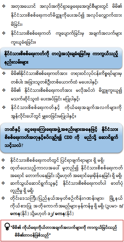 မိမိ၏နိုင်ငံသားစိစစ်ရေးကတ်အား တရားဝင်လုပ်ငန်းကိစ္စရပ်များမှတစ်ပါး အခြားသူတစ်ဦးတစ်ယောက်ထံ မပေးပါနှင့်၊